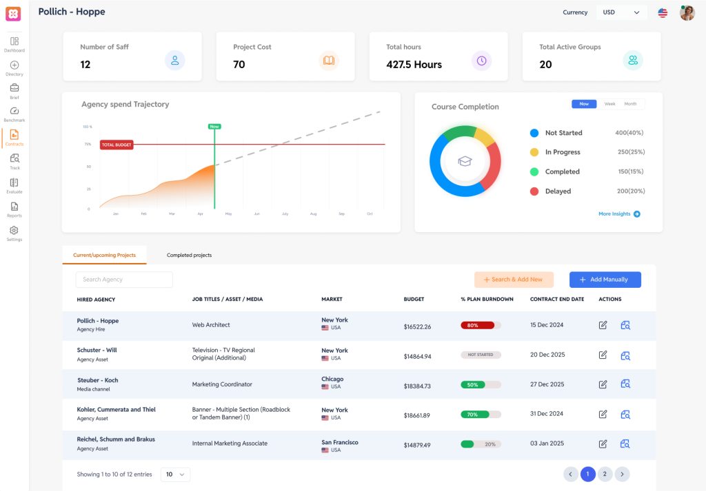 Ideal for: Enterprise organizations managing marketing and creative agency relationships across multiple markets and geographies. Companies tired of financial leakage from poor visibility. Procurement teams that need defensible data for negotiations. Anyone who’s ever said “we need to get our agency spending under control” and actually meant it.